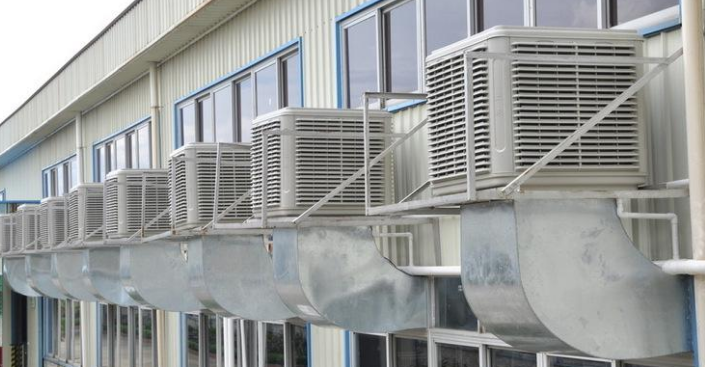 環??照{與中央空調的降溫方式不一樣,傳統空調是壓縮機制冷,耗電量當然大了,而環??照{是利用水蒸騰吸熱的原理方式來對車間進行降溫,我們都知道,夏天站在有水的當地是十分涼爽的,因為水蒸發了我們身上的熱量,自然就感覺就十分涼爽,環??照{的原理的也是如此,當外界熱空氣進入空調機后,會被蒸騰發簾上的水吸走熱量,形成冷空氣,然后再源源不斷的送入廠房車間進行降溫,水蒸發吸熱是一個天然的原理現象,所有不使用壓縮機制冷的環??照{耗電量相對來說就小了很多。